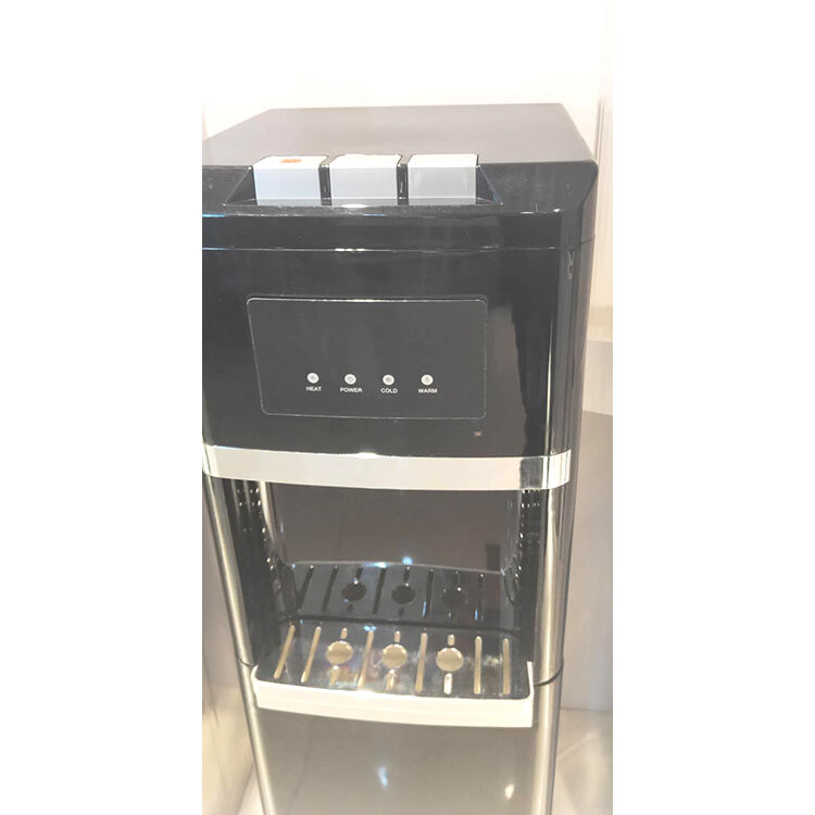 Presentamos el dispensador de enfriador de agua mineral personalizado Weisidun de 220 V negro comercial con botella oculta en el interior para viviendas con grifos de agua caliente y fría. Este dispensador de agua elegante y moderno es perfecto para cualquier hogar u oficina.