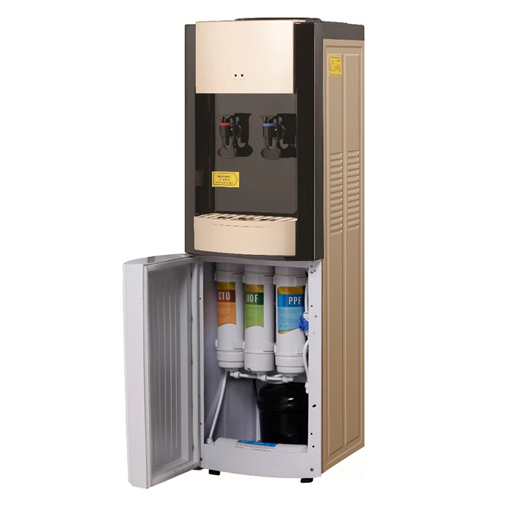 Penapis air PP+ CTO+RO+T33 tangki panas 1.1L tangki sejuk 3.4L kuasa pemanasan 500W kuasa penyejukan 90W saiz 33*34*98cm boleh ditambah UV mempunyai pam galak |
